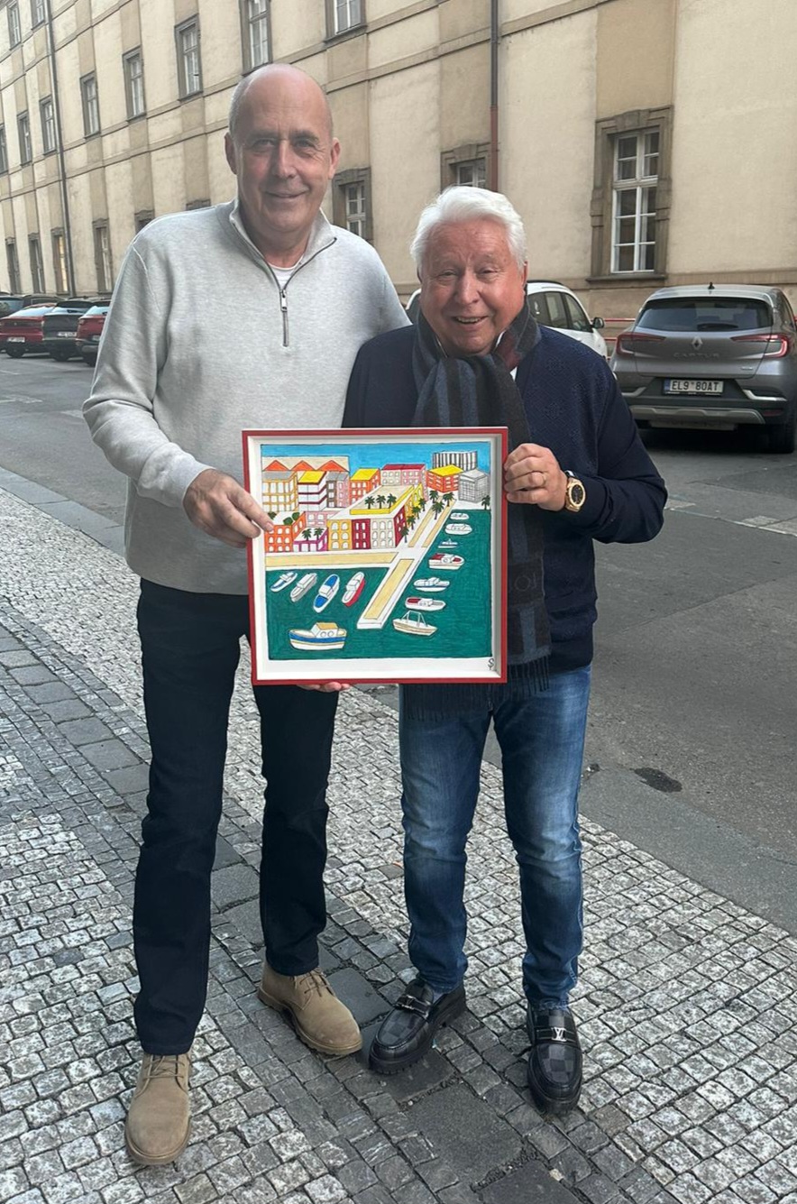 Petr Salava už namaloval 57 obrázků a z toho 20 má své nové majitele. Tento týden si svoje „plátna“ převzali Davide Mattioli (Italské město Fano), Doc. Miroslav Černošek (Monaco) a majitel Zámku Berchtold JUDr. Václav Růžička (Irské město Cork). Petr v těchto dnech dokončuje „Přístav na ostrově Ischia“ a v plánu má „Kostely v Tallinu“. Foto: AS PRESS