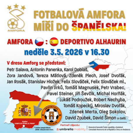 Fotbalovou Amforu, která letos oslaví už 52. narozeniny, čeká další mezinárodní utkání. V rámci zájezdu do 36. země světa zamíří Amfora do Andalusie, konkrétně do Malagy a Marbelly. Soupeřem Amfory bude celek internacionálů CF Deportivo Alhaurin. Tento tým loni vyzval Legendy Španělska ( Fernando Hierro, Michel Salgado, Juanito…) a sehrál s nimi velmi vyrovnaný zápas. … Celý článek