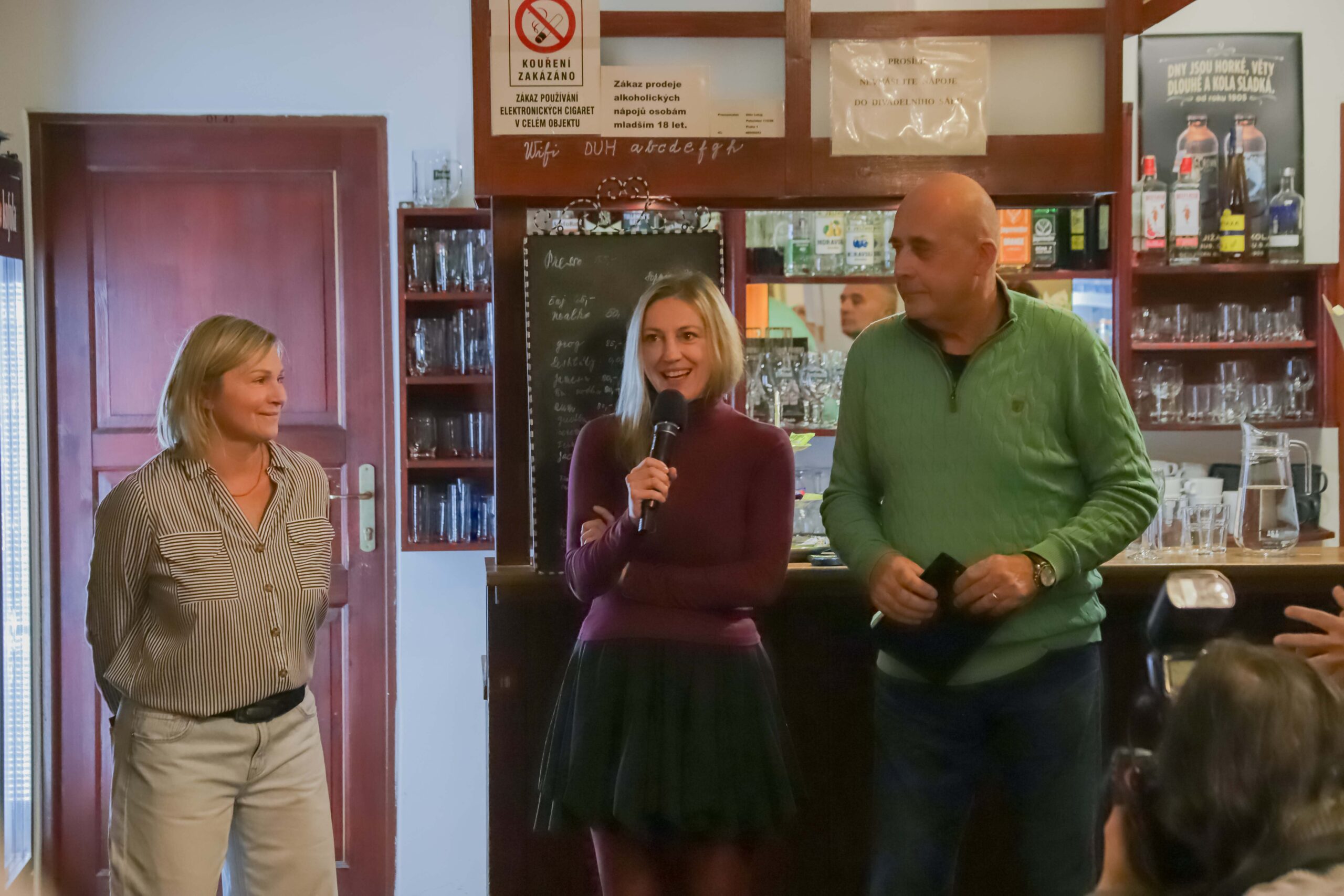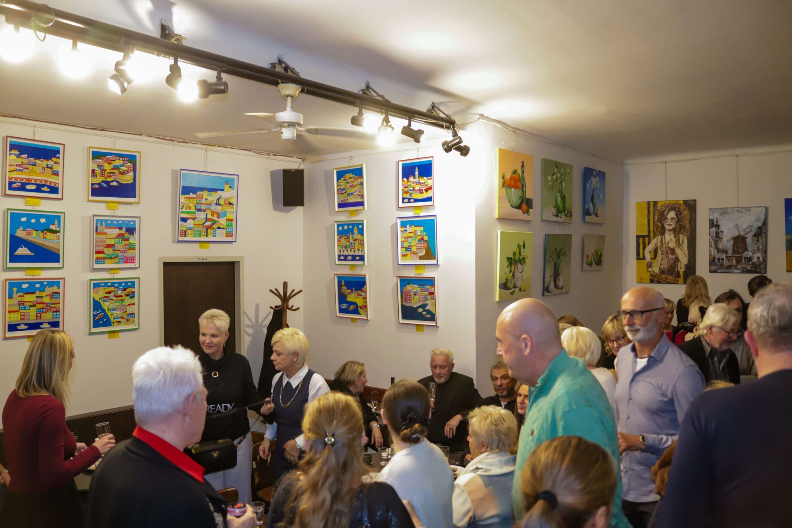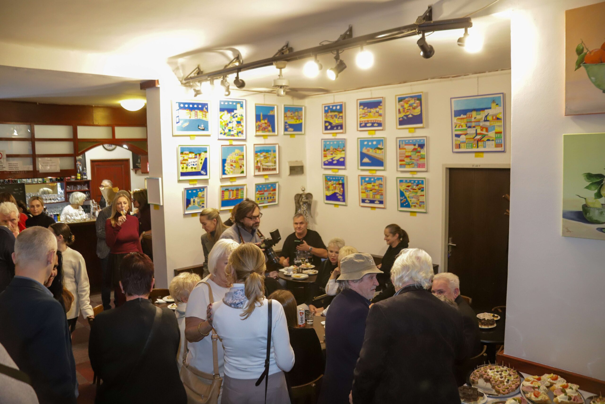 Ve středu 26.11.2026 se do posledního místa naplnil divadelní klub U Hasičů, a to proto, že se tam konala vernisáž výstavy obrazů a obrázků Dany Čenské a Petra Salavy. Moderaci si vzal na starost Petr Salava a přítomné v úvodu pozdravili lektorka Jana Vlková, výtvarník Karel Štědrý ml. a bavič Milan Pitkin. Pak už se rozproudila zábava a také tvorba řady selfíček a fotografií. Danu Čenskou přišel podpořit její manžel Jan, dále dorazili herci Adéla Gondíková a Roman Skamene, dirigent Petr Chromčák, žurnalisté Hana Höschlová a Libor Šprysl a řada dalších vzácných hostů. Obrazy a obrázky se líbily a několik jich už během večera změnilo majitele… Výstava v Divadle U Hasičů potrvá až do konce ledna 2026. FOTO: Matěj Salava a Libor Šprysl.