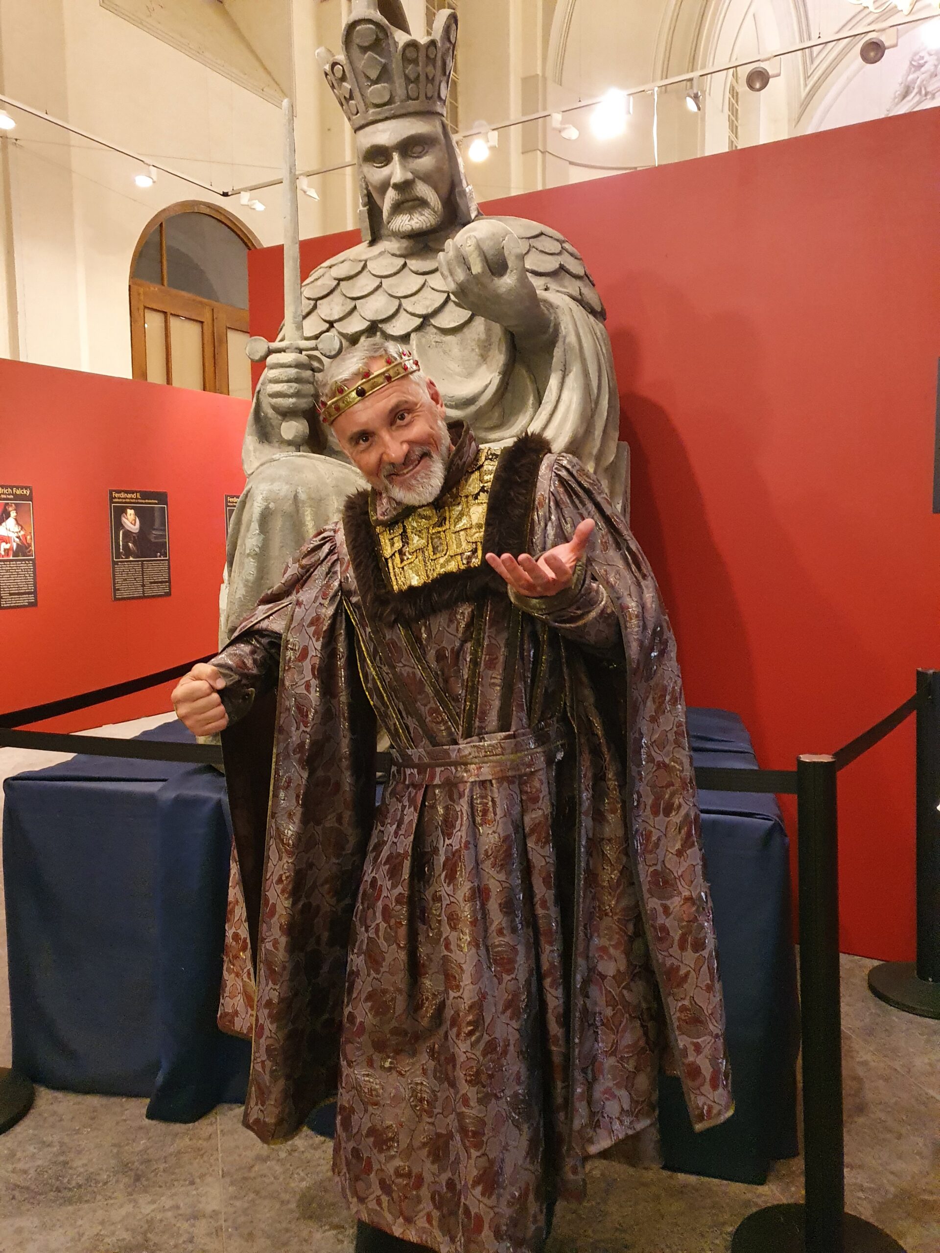 Ve středu 9.6.2021 proběhla ve Vlastivědném muzeu v Olomouci slavnostní vernisáž výstavy České korunovační klenoty na dosah. Ředitel muzea ing. Břetislav Holásek pověřil rolí ceremoniáře Petra Salavu a rolí krále Karla IV. Jana Čenského. Oba se svého úkolu zhostili se ctí. Hudbou vernisáž ozdobilo dámské flétnové seskupení Black Ladies. FOTO: AS PRESS