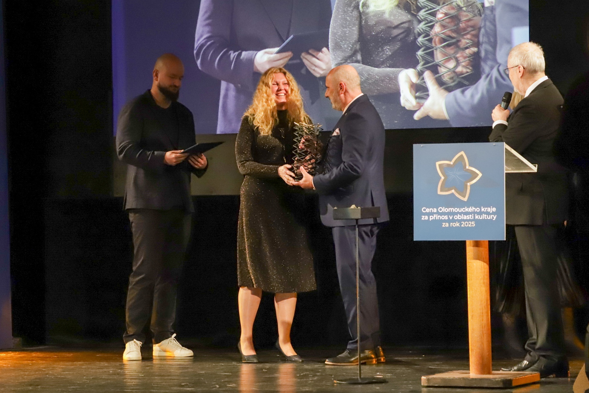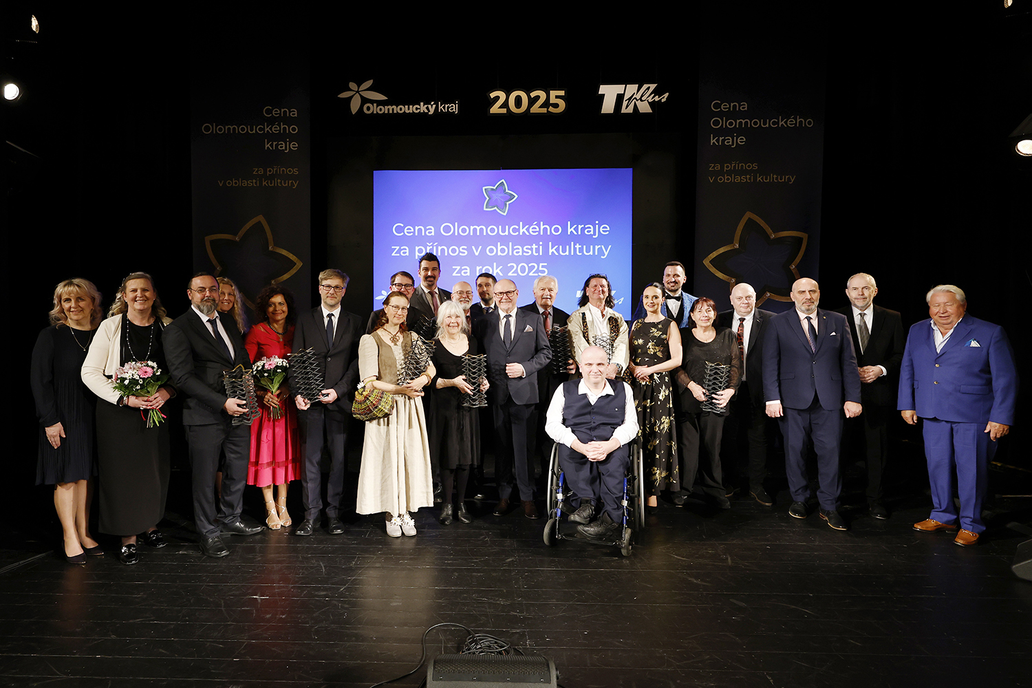 V Městském divadle v Prostějově byly v pondělí 13.4.2026 předány (už podvacáté) Ceny Olomouckého kraje v oblasti kultury 2025, nazývané zkráceně Kulturní počiny roku. Scénář připravil, stejně jako s filmovým štábem obrazové vizitky laureátů natočil a režii slavnostního večera měl Petr Salava. Moderátorem celé té slávy byl velmi vtipný Marek Eben a hudebními hosty Pokáč a Radim Schwab. Do Dvorany slávy uvedl hejtman Ladislav Okleštěk Janu Krejčovou a se svými náměstky a radními OK ocenil dalších osm osobností. Mezi nimi byl i doc. Miroslav Černošek za Divadelní festival Aplaus a primátor statutárního města Prostějova Mgr. František Jura za projekt Operní gala pro Prostějov. FOTO: Pavel Lebeda a Matěj Salava