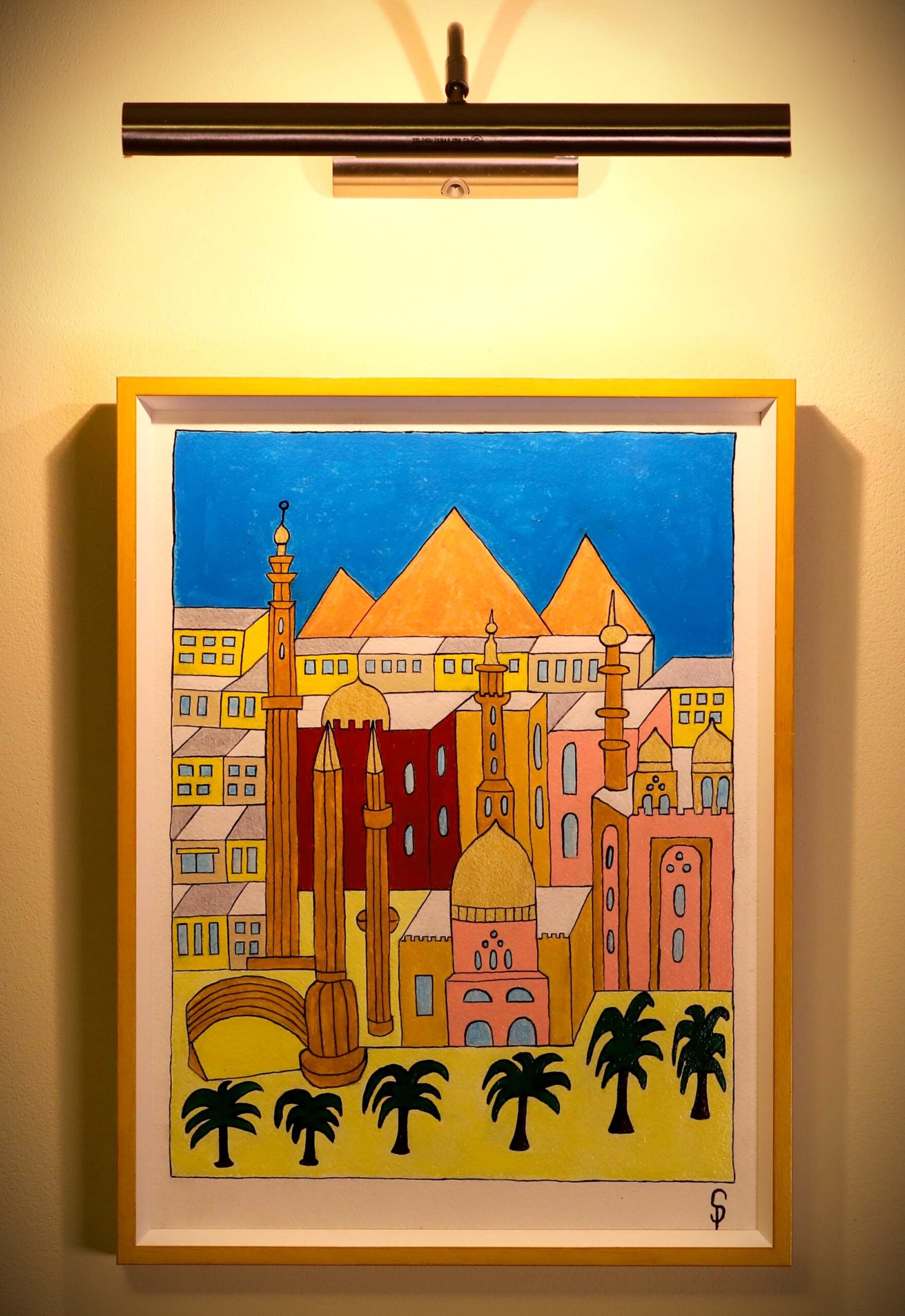 KÁHIRA, Egypt 2025 /Petr Salava – akryl, 30×40 cm, s rámem 32 x 42 cm/. Cena 7.000 Kč včetně žlutého rámu.