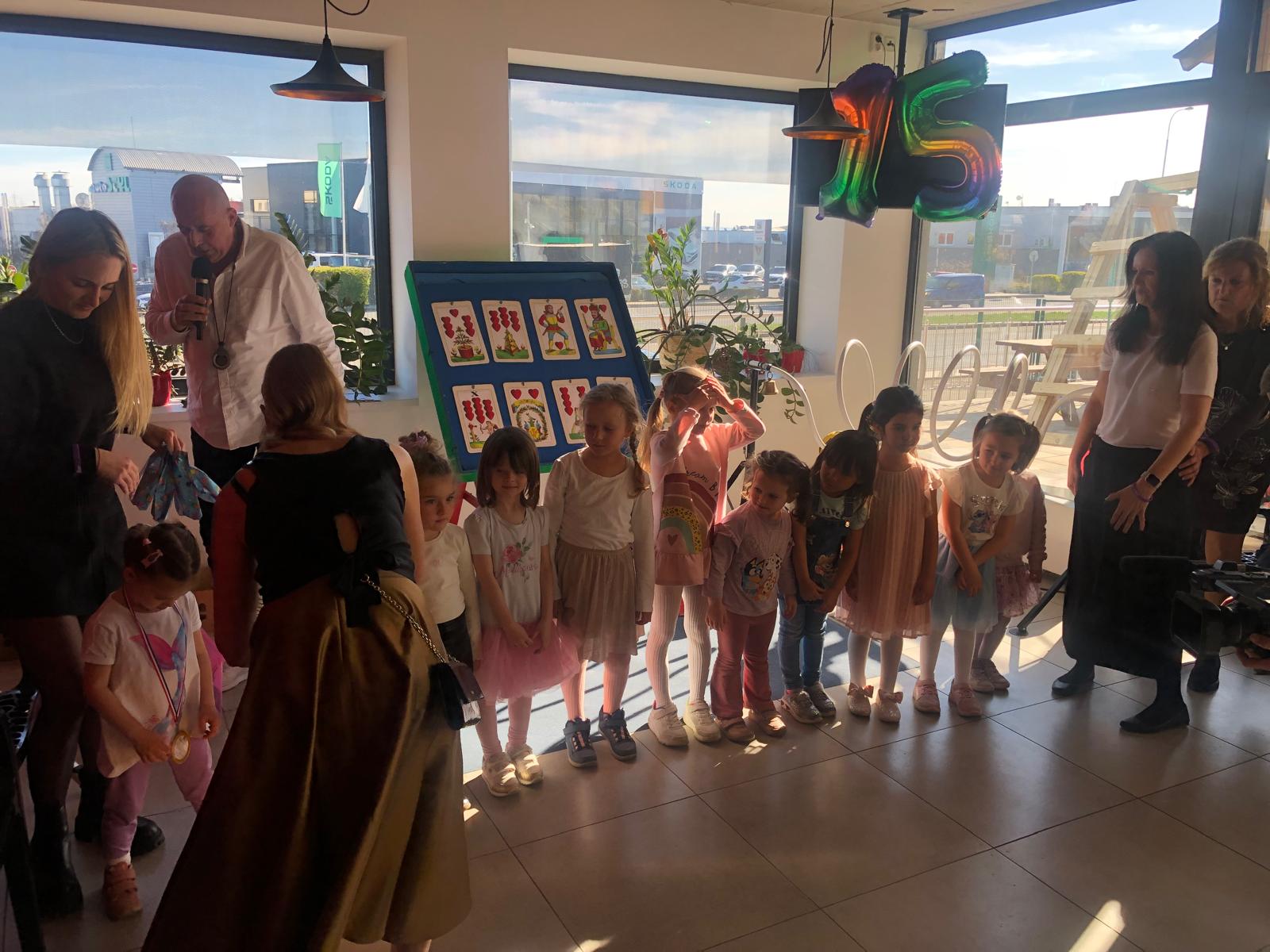 Firemní školka spol. Siemens, působící v pražských Stodůlkách, oslavila ve čtvrtek 9.4.2026, ve sportovním centru JEREMI, už patnácté narozeniny. Po úvodních pozdravech majitelky školky Ing. Karin Gombalové a Ing. Petry Jeřábkové (P&O Head Siemens) zazpívala absolventka školky Emilka Tuháčková a pak už se rozjela povedená soutěžní část. Holky dive tentokrát porazily kluky, ale hlavně se všichni dobře bavili. Nechyběl ani narozeninový dort se kterým se učitelky Helča, Lenka, Adélka a Karin vyfotily a přidal se k ním i autor scénáře oslavy a její moderátor Petr Salava. Jen pro pořádek, školkou za dobu její existence prošlo už 329 dětí… FOTO: Milan Gombala